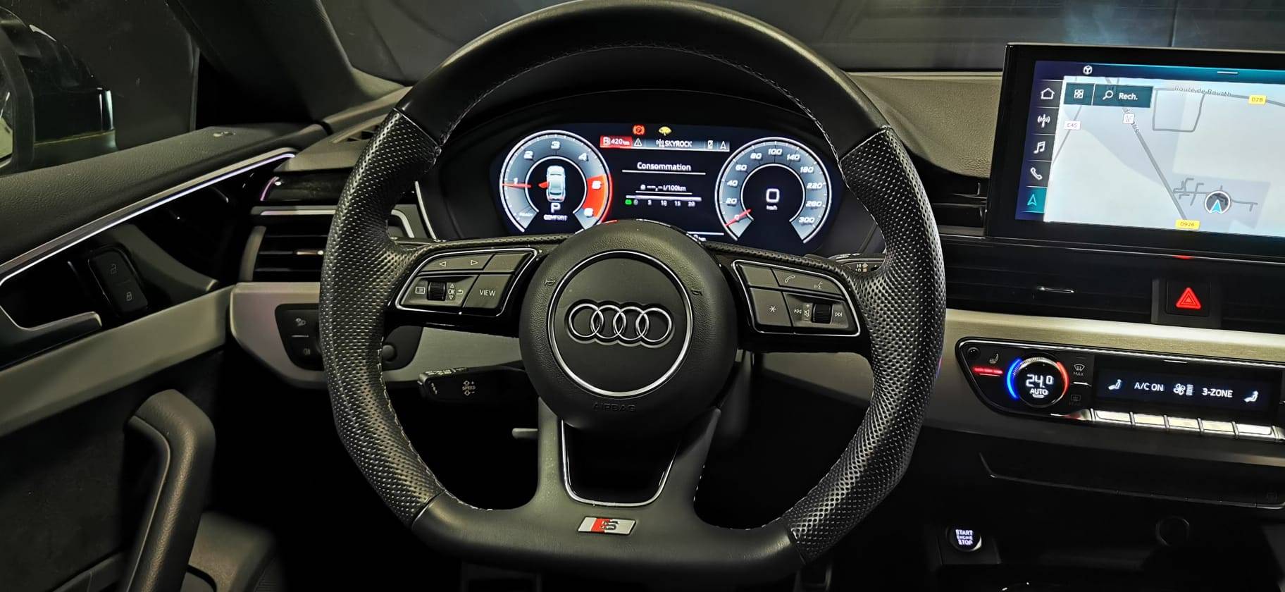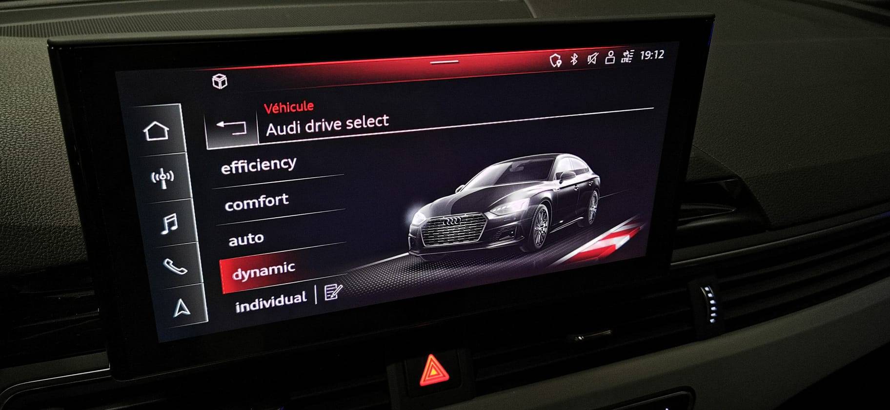 Audi Drive Select Permet de sélectionner différents modes de conduite: Efficiency, Confort, Dynamic, Lift, Individual. Les systèmes et équipements du véhicules s’adaptent suivant le mode sélectionné (Série)