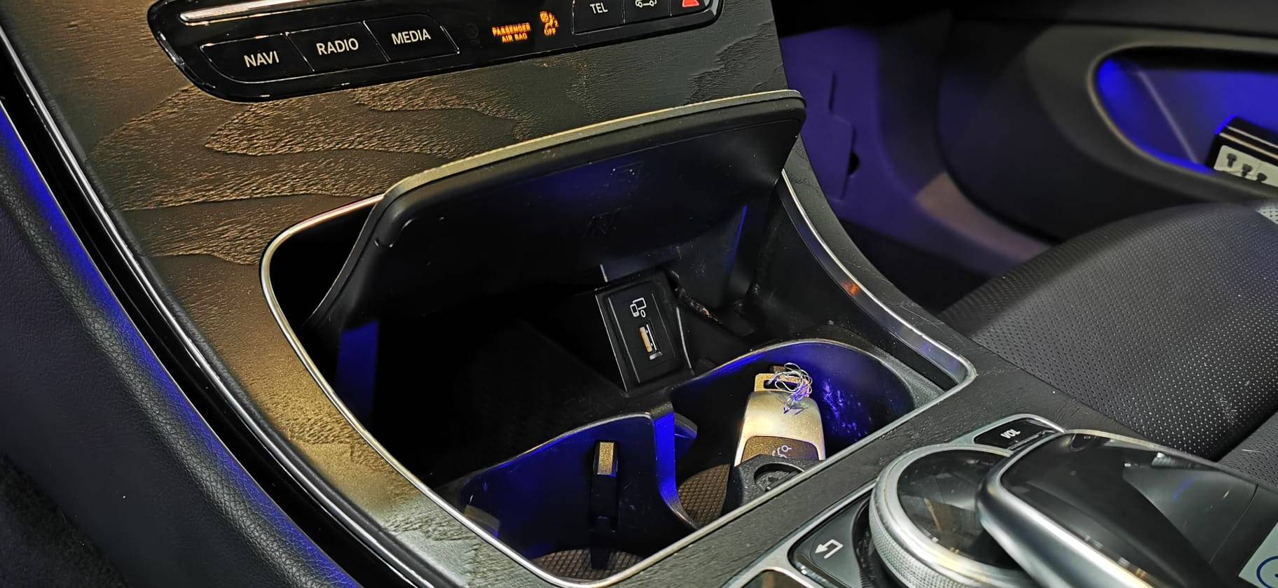 Accoudoir central AV et vide-poches inculant deux prises USB et une fente SD (Série)