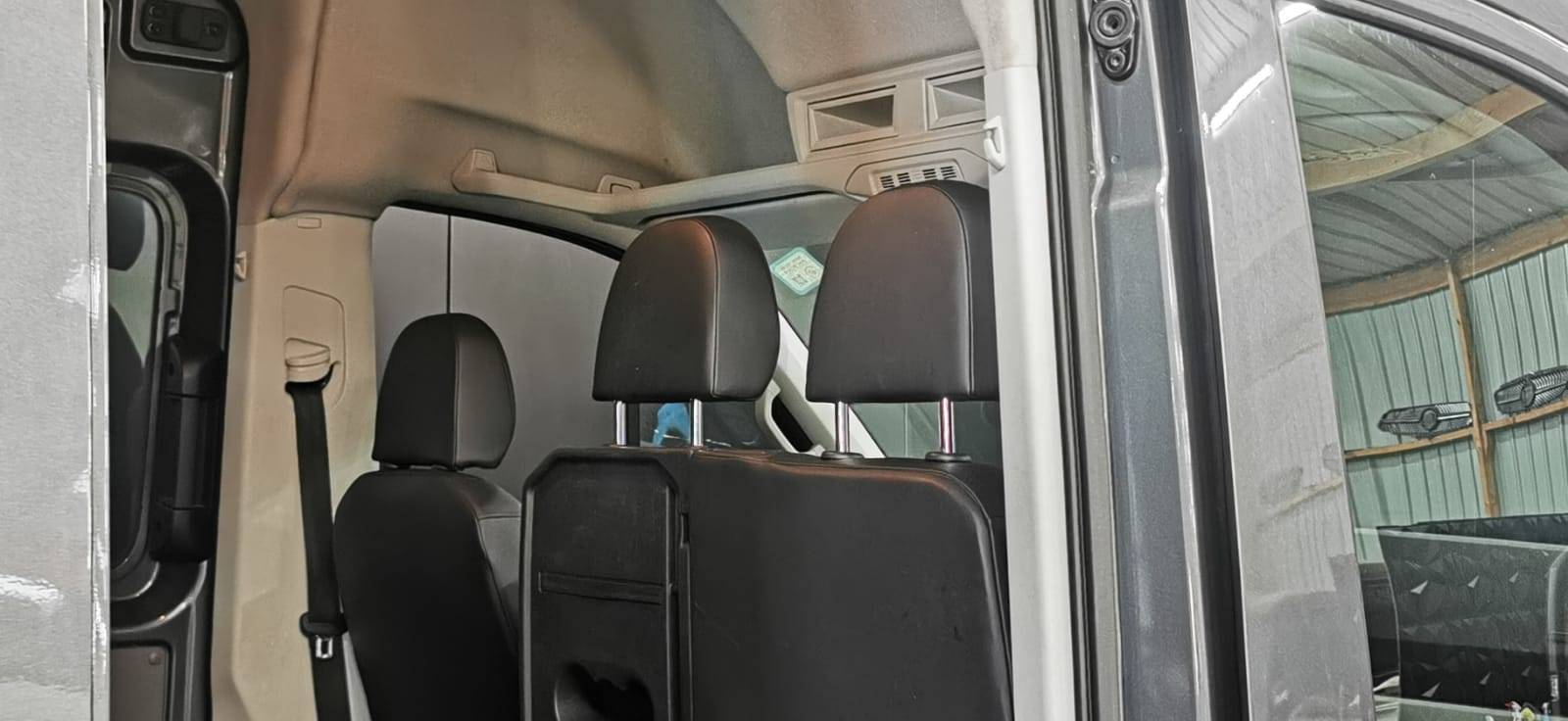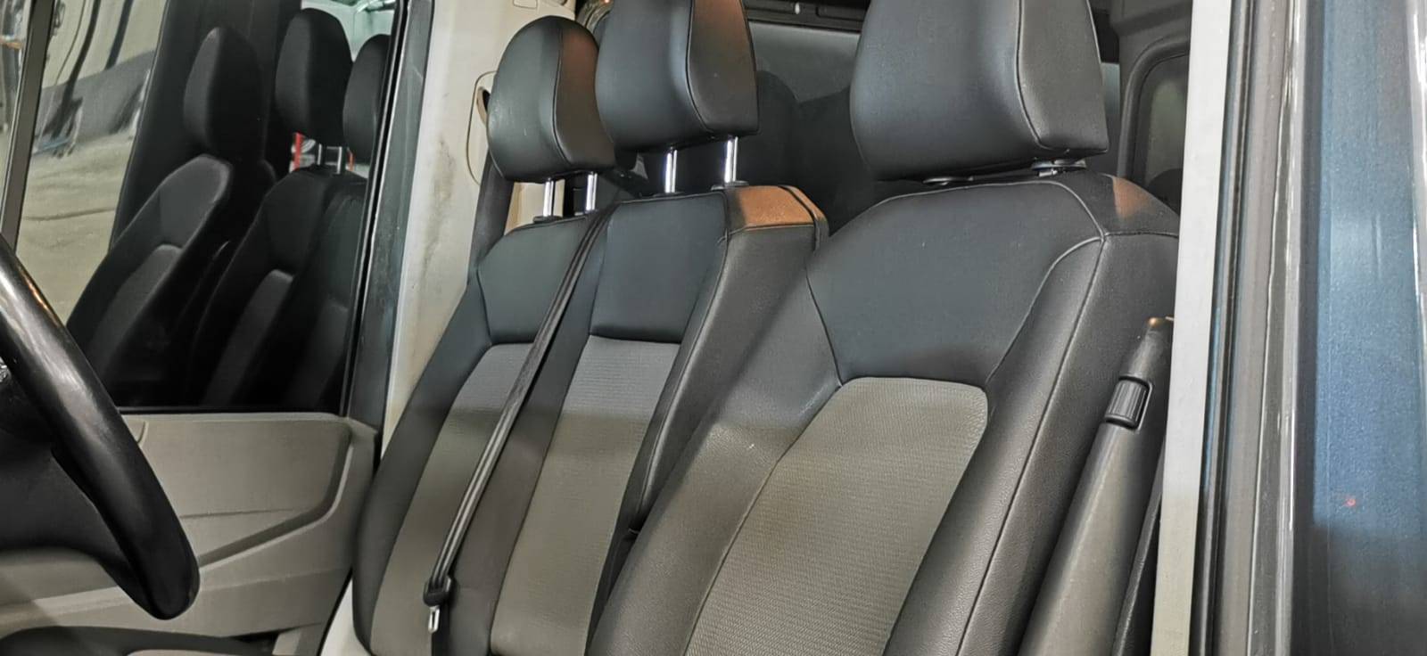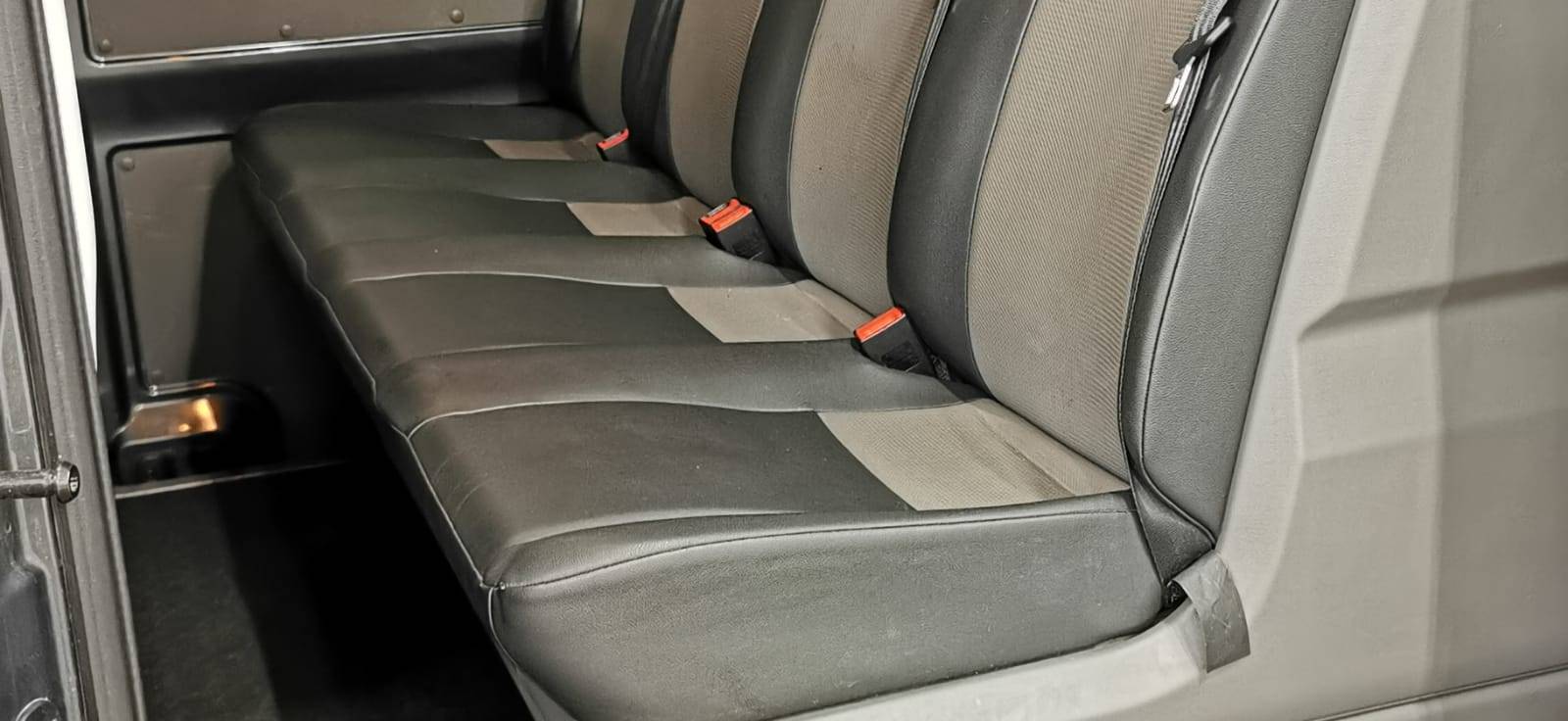 Banquette double pour 2 passagers avec grand espace de rangement sous les assises relevables séparément, d’une table au dos de la place du milieu (rabattable) avec porte-gobelet et porte-stylo (Série)