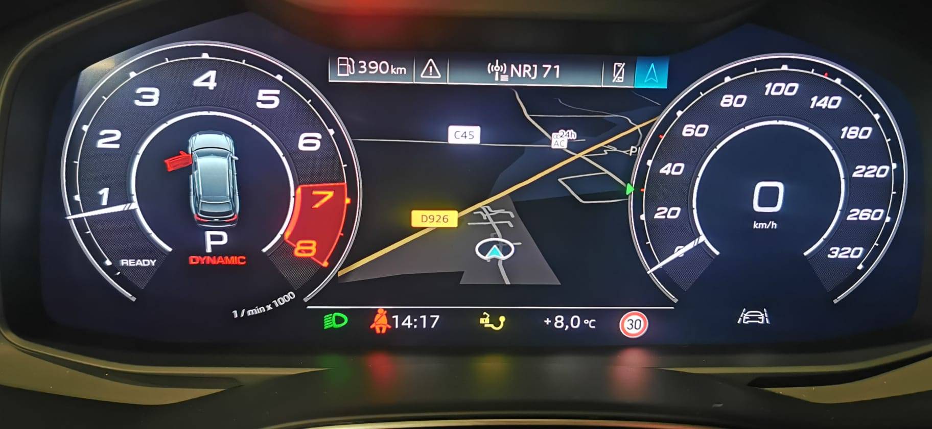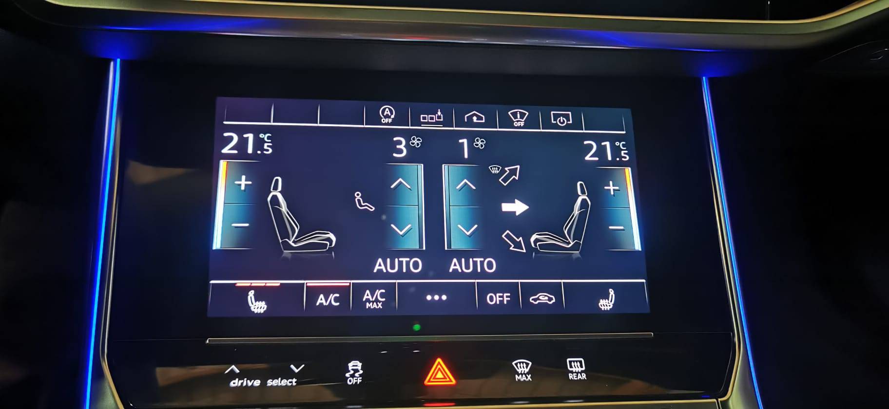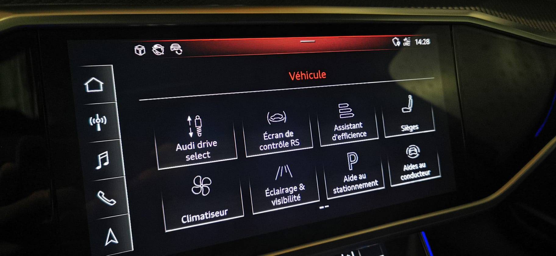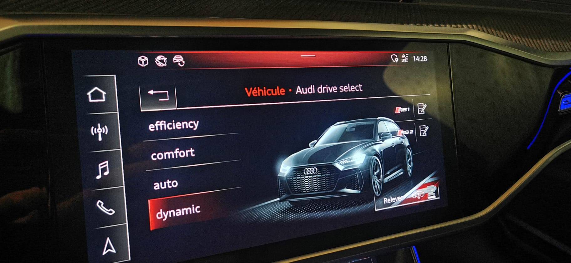 Audi Drive Select Permet de sélectionner différents modes de conduite: Efficiency, Confort, Dynamic, Lift, Individual. Les systèmes et équipements du véhicules s’adaptent suivant le mode sélectionné (Série)