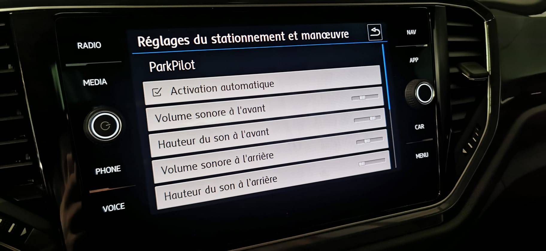 Aide au stationnement AV/AR avec signaux sonores et visualisation de la distance des obstacles sur l’écran (Série)